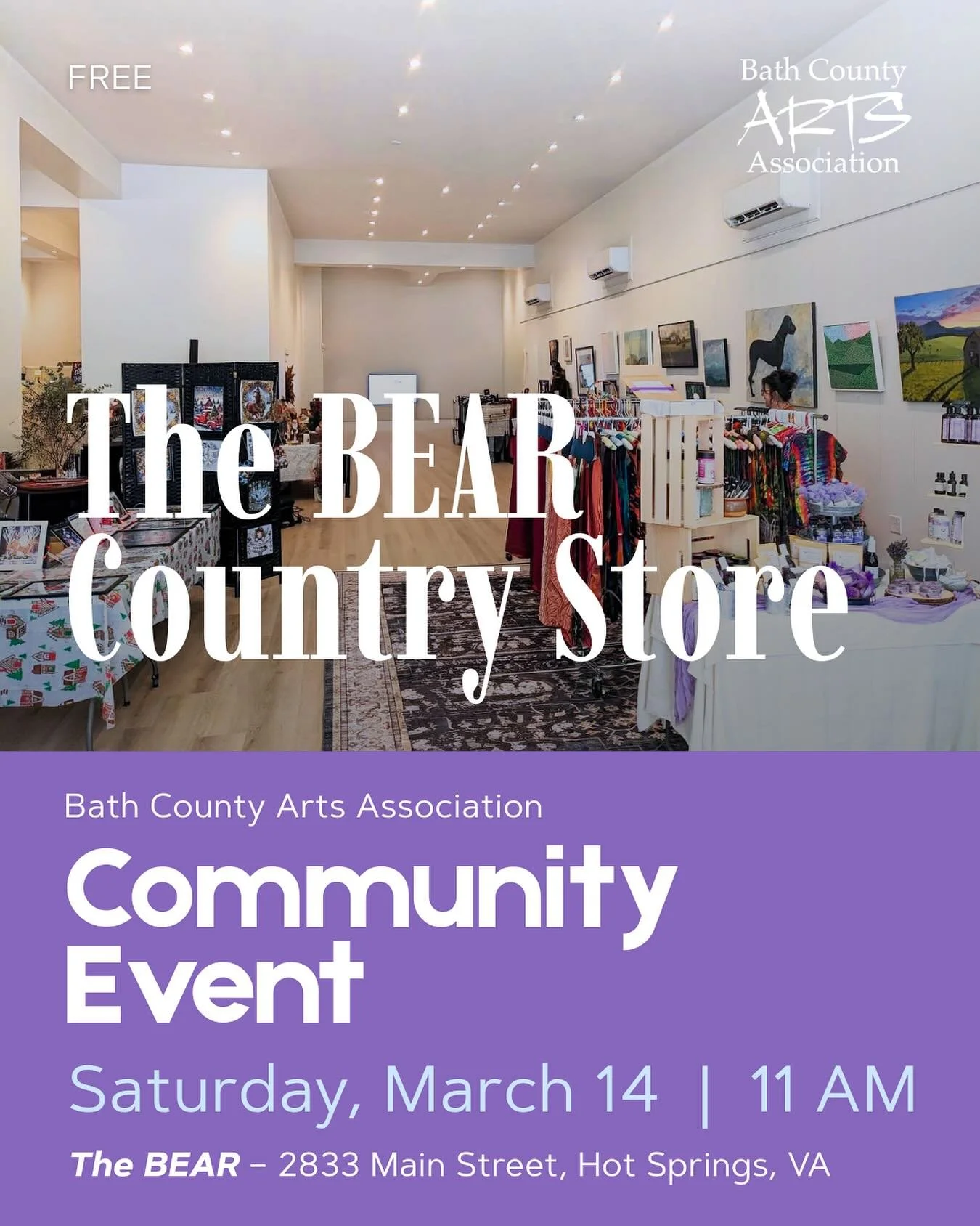 a vibrant new home for art, learning, and connection in the heart of Bath County. From painting to storytelling, crafts to concerts, The BEAR invites all ages to create, explore, and connect with the community through the arts.