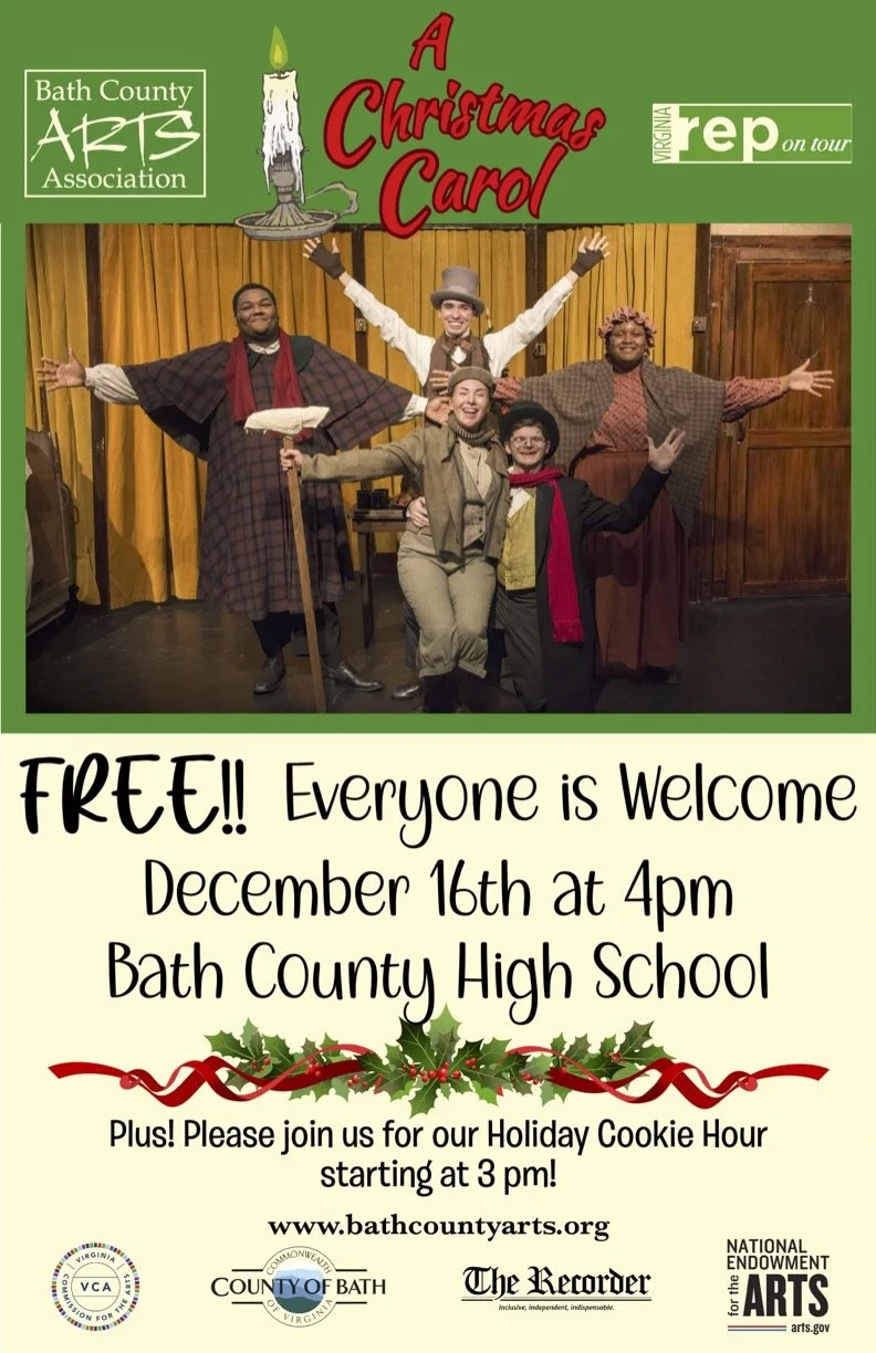 On December 16, 2023 at 3pm Join Us at Bath County High School for a special showing of A Christmas Carol. A free activity to help get everyone into the holiday spirit!